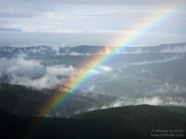 Wonderful day, A rainbow appears while standing on a mountain top (Grosser Arber in Germany).